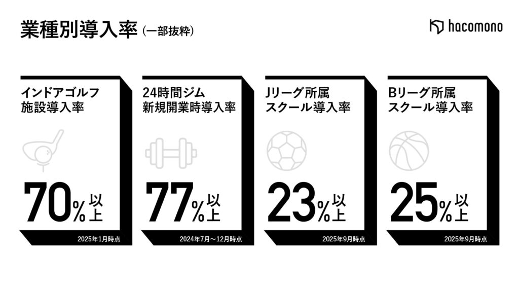さらに、JリーグやBリーグのプロチーム傘下スクールへの導入も拡大しており、現在ではそれぞれのスクールの約4分の1で「hacomono」をご利用いただいています。スクール運営の効率化と会員体験の向上を通じて、事業拡大に確かな手応えを感じていただいています。