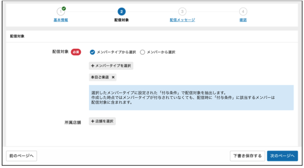 来店・予約・購買などのデータをもとに、配信対象となる会員を設定可能です。